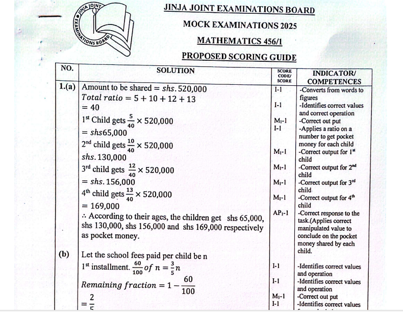 Score Guide UCE Mathematics Makadita Mocks 2025